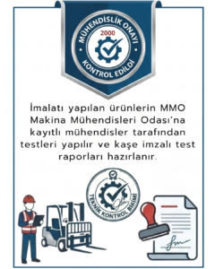 İmalatı yapılan her ürünün Makina Mühendisleri Odası'na kayıtlı mühendisler tarafından test kontrolleri yapılır ve kaşe imzalı test raporları hazırlanır.